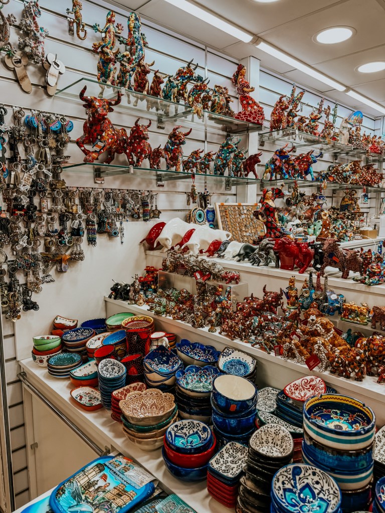 There’s also fresh fruit, colourful spices, beautiful cheeses, and loads of stalls selling trinkets and souvenirs.