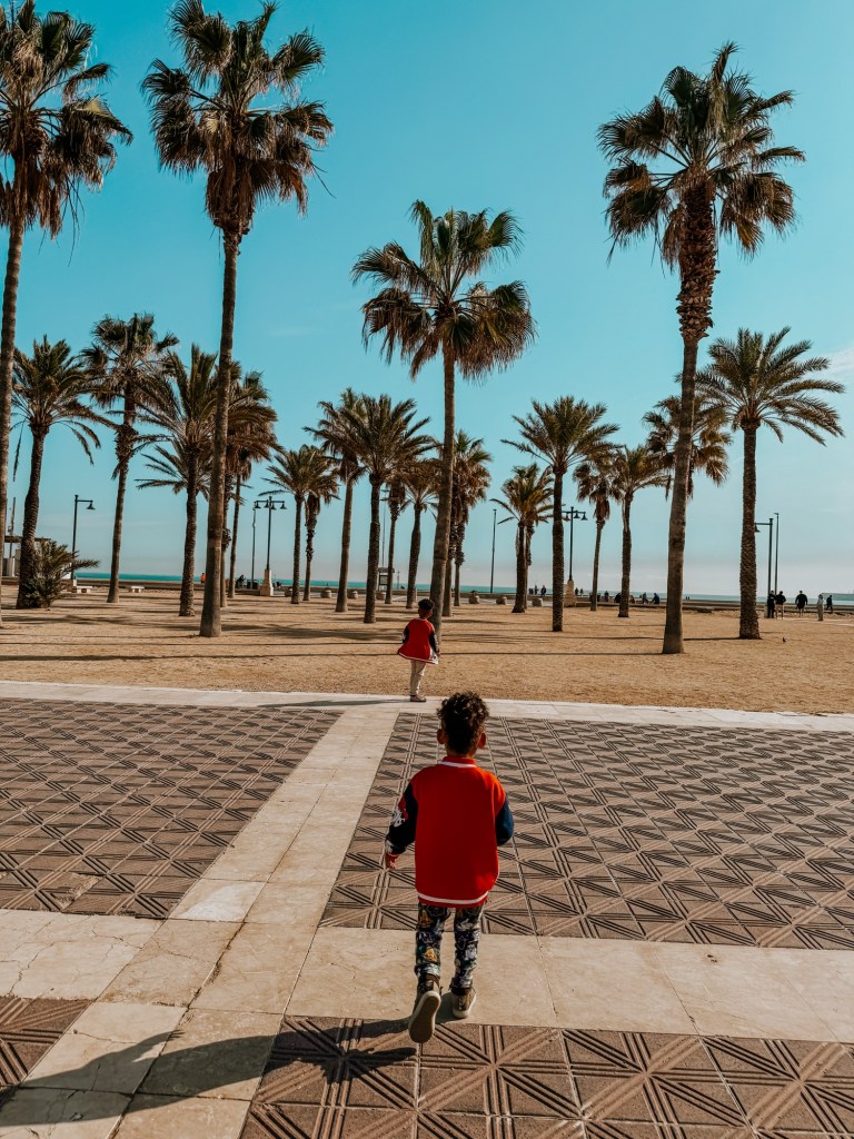 There’s a long, palm-lined promenade perfect for wandering, grabbing an iced drink, and pretending you’re in a chic travel vlog — even if you’re actually chasing a toddler with a spade.